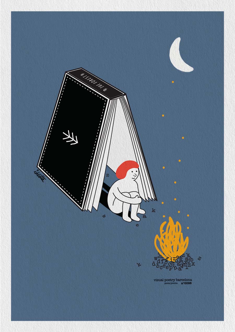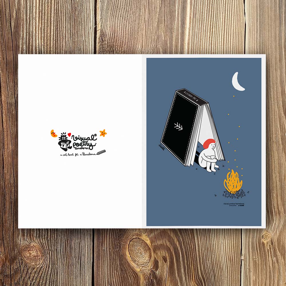 Lámina ilustrada con poema visual "Book tent". Piezas únicas que son perfectas como elementos de decoración o como recuerdos únicos. Ideales para enmarcar y dar un toque especial a algún rincón de tu casa.