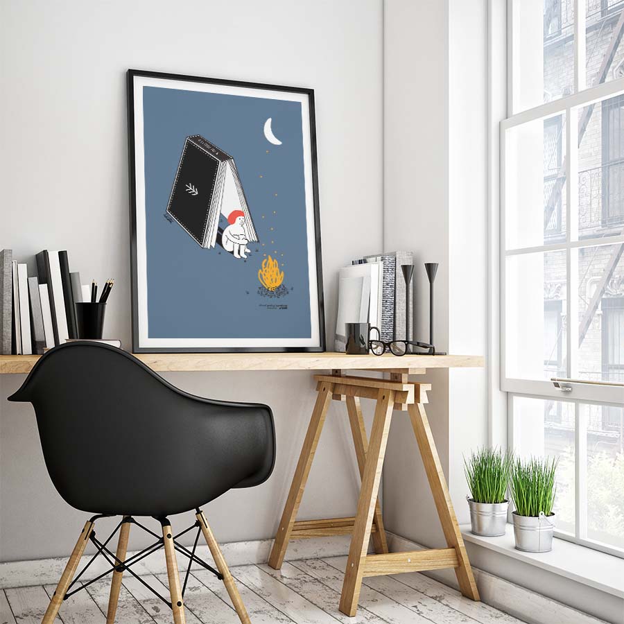 Nuestra Ilustración "Book tent" impresa en alta calidad  sobre papel mate grueso y resistente. Llena de poesía y emoción tu rincón preferido con las Ilustraciones de Xavier Bartrina, nuestro artista mágico..