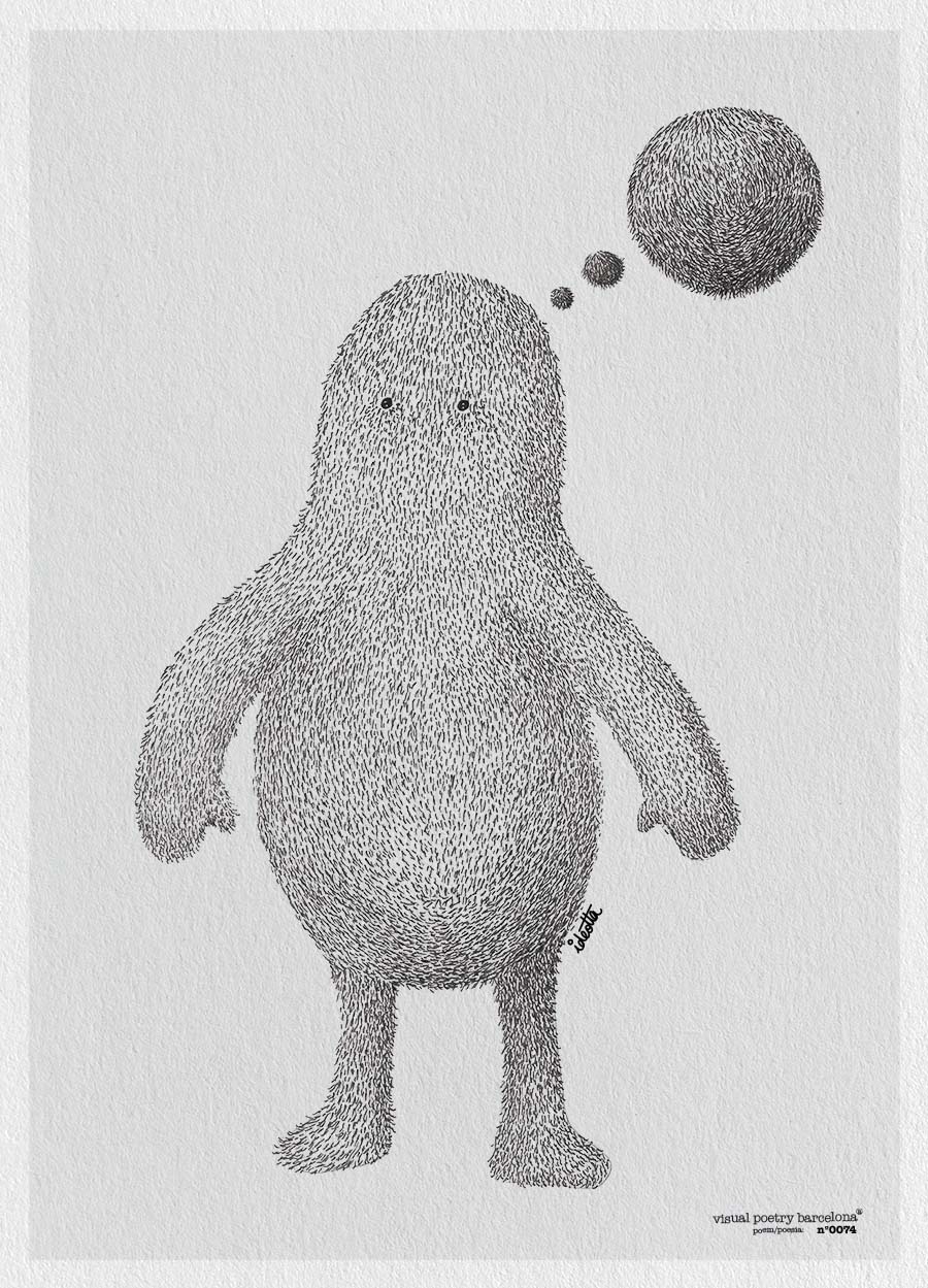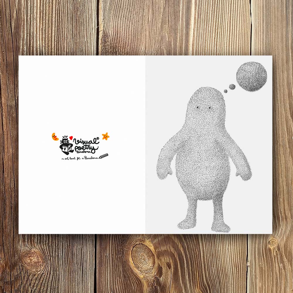 Lámina ilustrada con poema visual "Pensamientos peludos". Piezas únicas que son perfectas como elementos de decoración o como recuerdos únicos. Ideales para enmarcar y dar un toque especial a algún rincón de tu casa.
