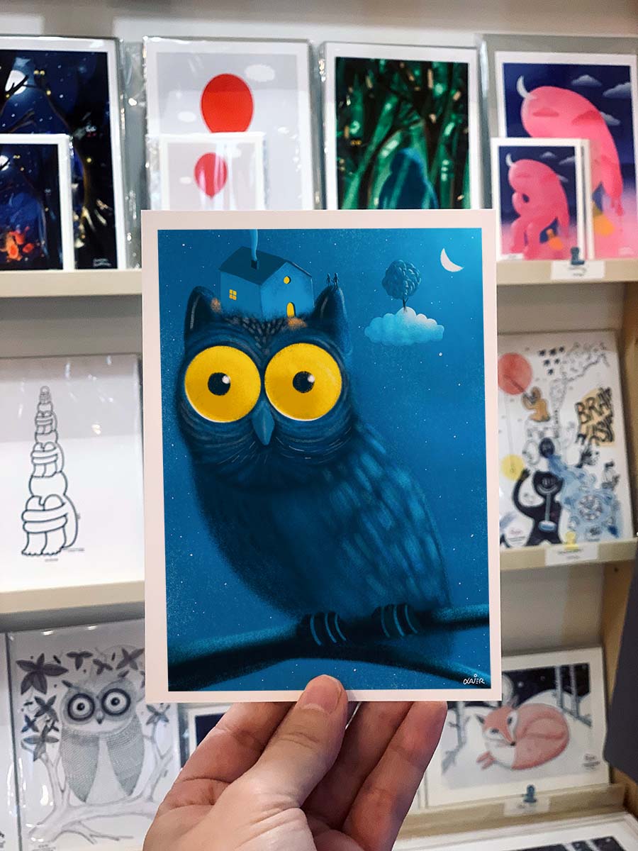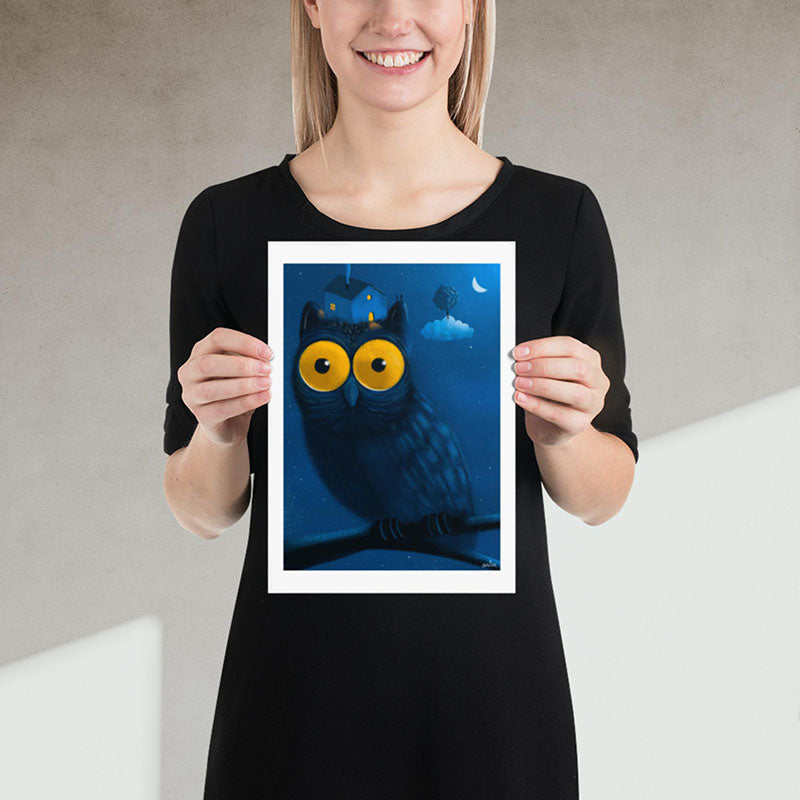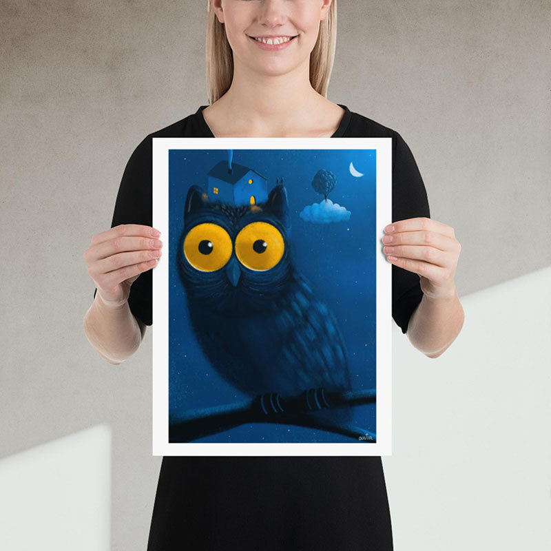Nuestra Ilustración "Night owls" impresa en alta calidad  sobre papel mate grueso y resistente. Llena de poesía y emoción tu rincón preferido con las Ilustraciones de Xavier Bartrina, nuestro artista mágico..