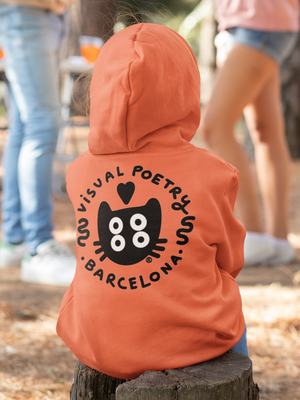 Sudadera capucha niños algodón orgánico. "Gato cuántico" (back-front)
