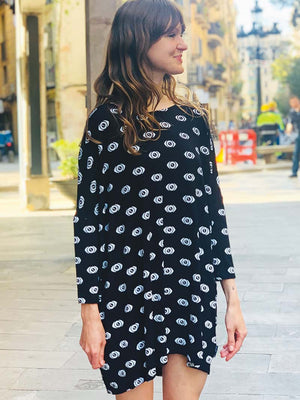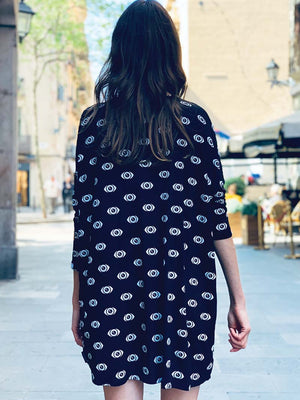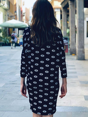 Vestido mujer manga 3/4 talla única. "Eyes in the dark"