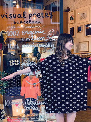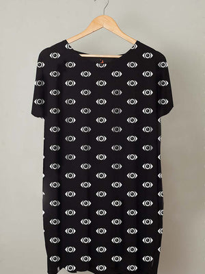 Vestido mujer manga corta talla única. "Eyes in the dark"